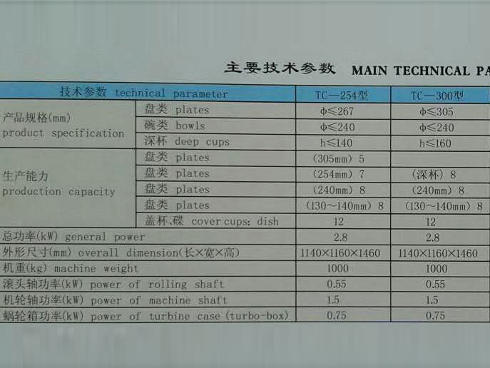 陶瓷機(jī)械設(shè)備主要參數(shù)一覽表